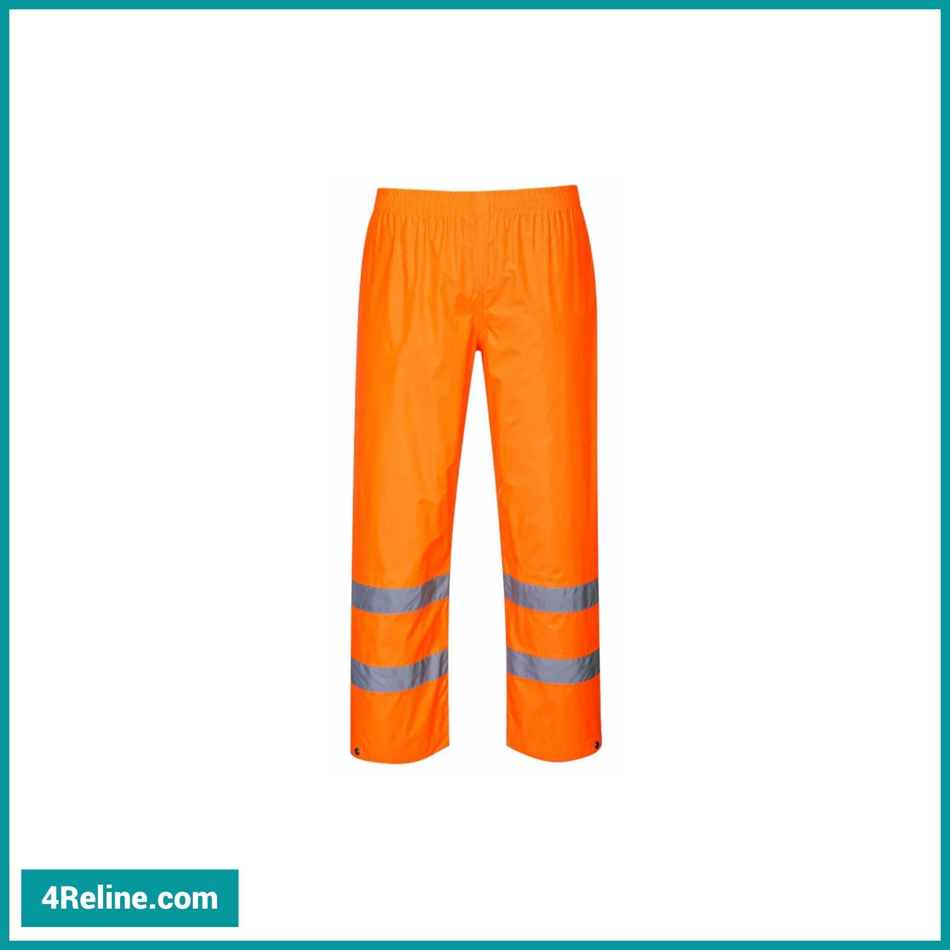 These high-visibility rain pants provide waterproof protection and visibility in wet and low-light conditions. Made from REACH-compliant PVC-coated material with an eco-friendly water-repellent finish, the fabric prevents moisture buildup on the surface and remains dry even in heavy rain.